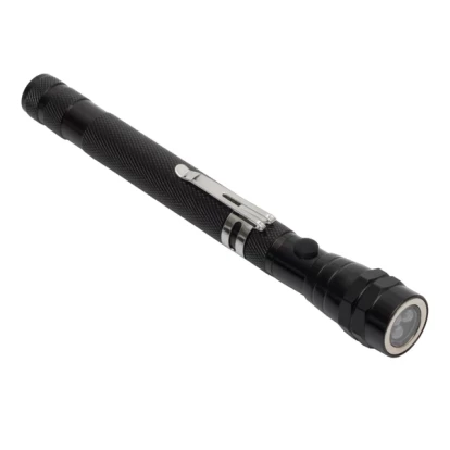 Teleskop o długości 38,5 centymetrach Wyposażona w 3 białe diody LED, o sumarycznym strumieniu światła 10 lumenów. Zaopatrzona w klips oraz magnesy na obu końcach. Zasilana 4 bateriami typu AG13 (w cenie produktu).